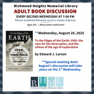 Ages 18+ | Drop in. No registration required! This month, this meeting takes place on the third Wednesday of August at 7:00 PM–normally this group meets every second Wednesday of the month. Members read a variety of fiction and nonfiction works.