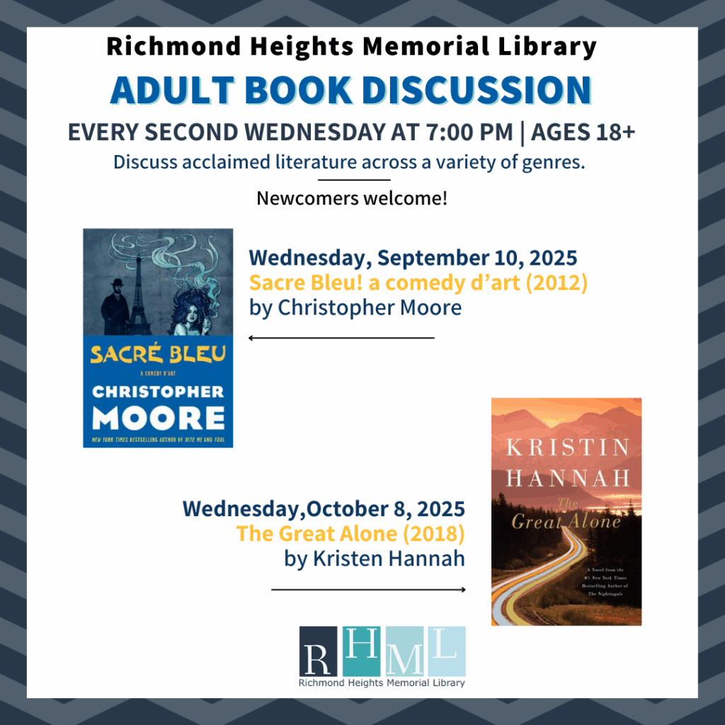 Join in our discussion of the book Sacré Bleu: a comedy d’art by Christopher Moore.