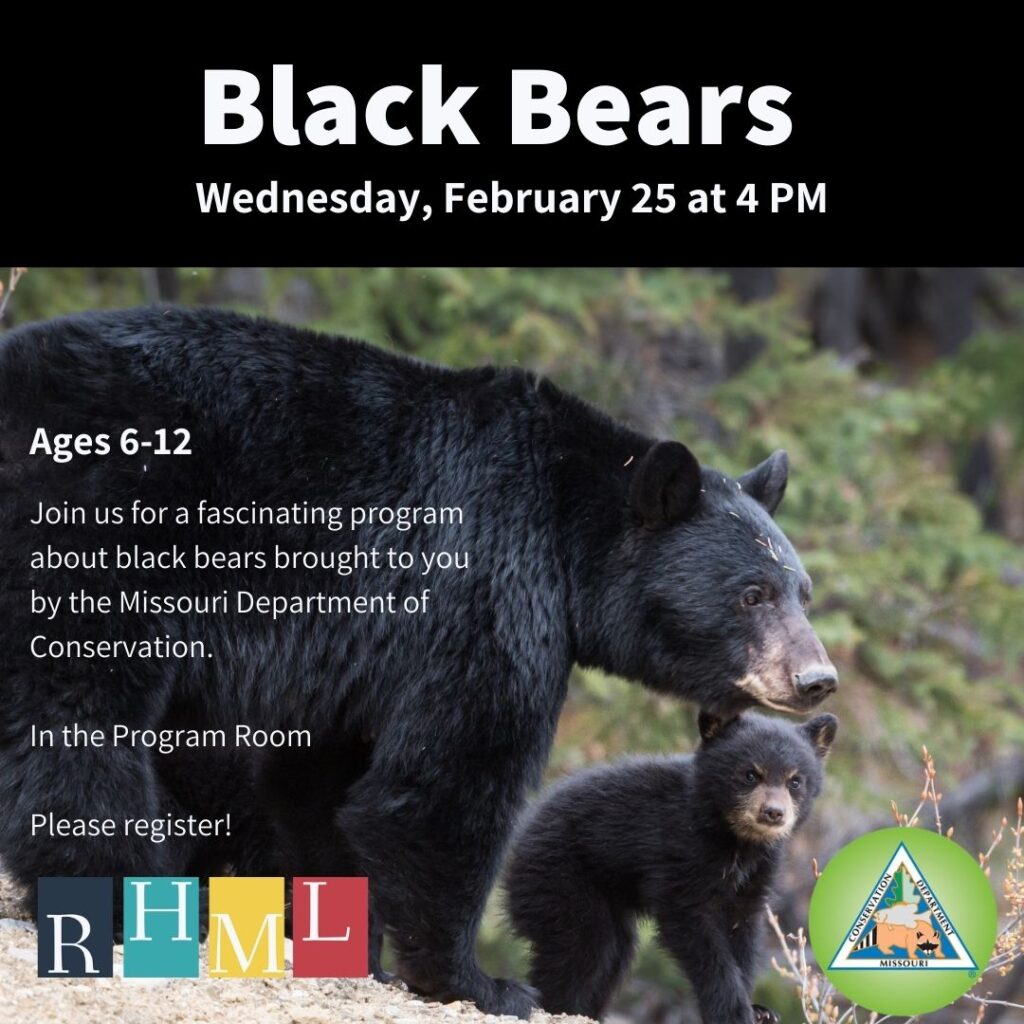 Join us for a program about black bears – brought to you by the Missouri Department of Conservation.