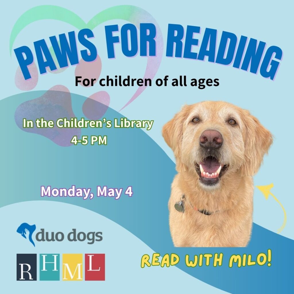Come read & hear stories with Milo, a specially trained and certified ADI (Assistance Dogs International) dog.