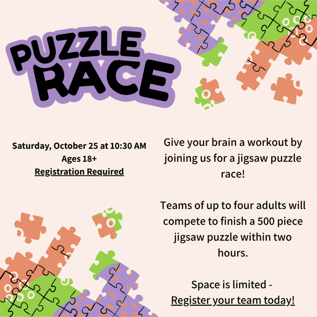 Gather a team of up to four puzzlers to show your skills at solving a 500-piece jigsaw the fastest. Puzzle fuel (coffee and donuts) provided!
