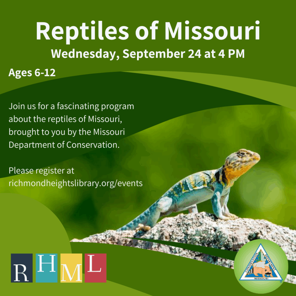 Join us for a fascinating program about the reptiles of Missouri, brought to you by the Missouri Department of Conservation.