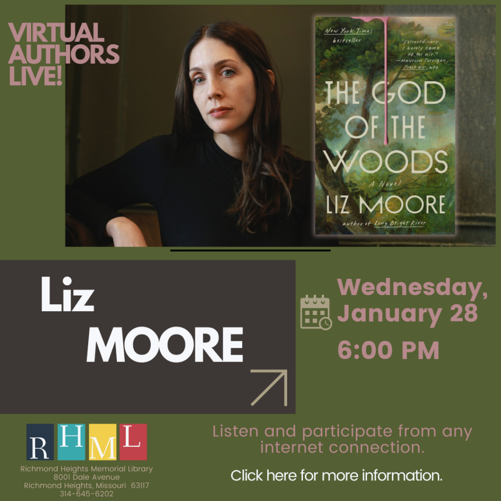 Virtual Authors Live! is thrilled to welcome back Liz Moore –- one of the first guests to appear in the Library Speakers Consortium series –to discuss her latest work, The God of the Woods, an instant New York Times bestseller and one of NPR’s 2024 “Books We Love” highlights. Early morning, August 1975: a camp counselor discovers Barbara Van Laar has gone missing. Barbara is the daughter of the family that owns the summer camp and employs most of the region’s residents. And this isn’t the first time a Van Laar child has disappeared. As a panicked search begins, a thrilling drama unfolds. Participate in this event live or watch a recording at a later time.