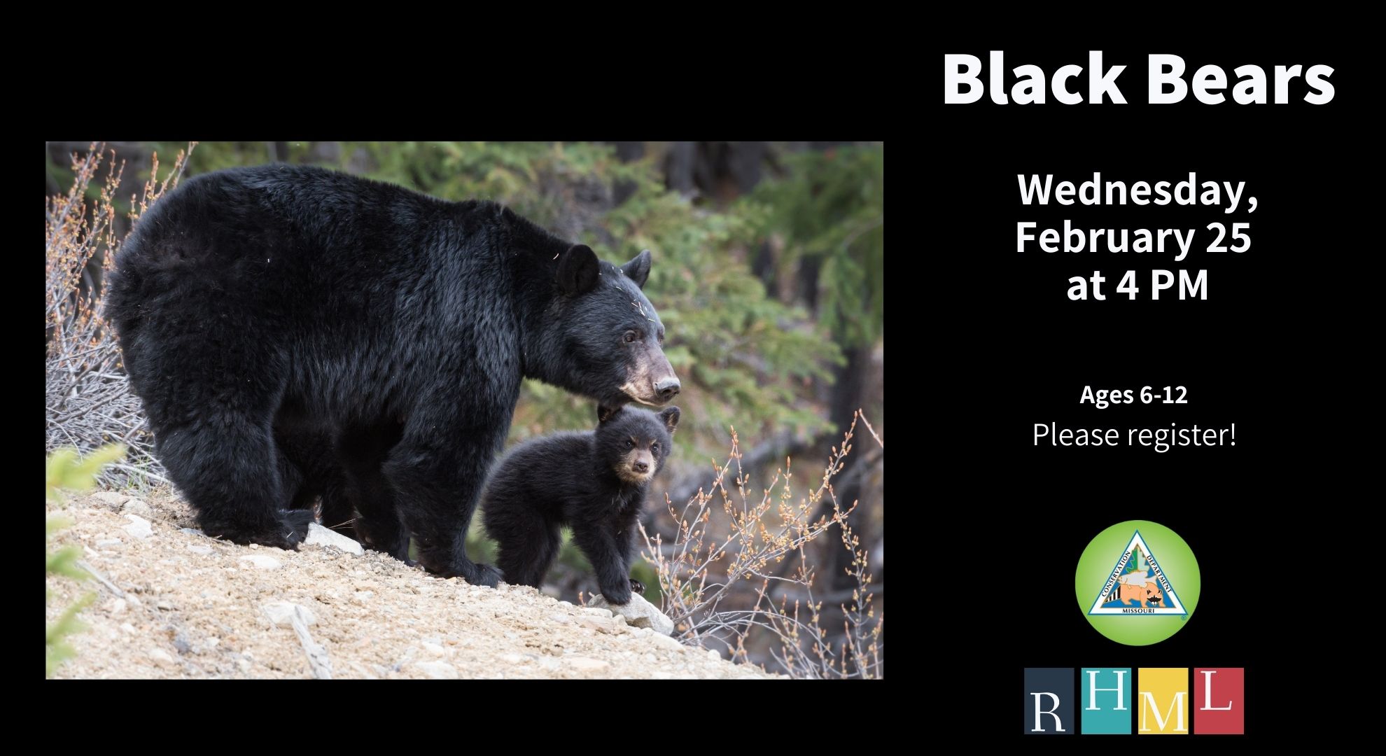 Join us for a program about black bears – brought to you by the Missouri Department of Conservation. |